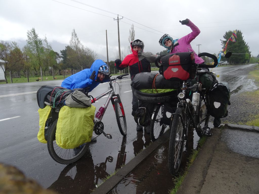 Pause-pluie dans une conduite d’eau sous la route. Qu’est-ce-qu’on fait en attendant ? Bah, on mange un morceau ?