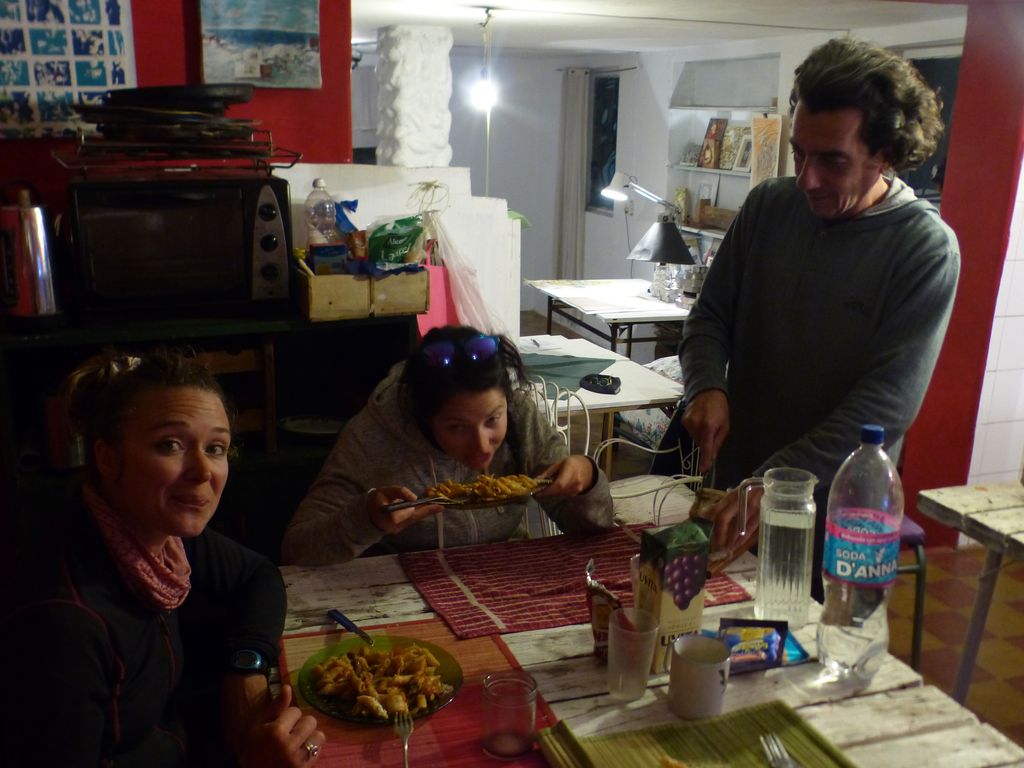 Pause-pluie dans une conduite d’eau sous la route. Qu’est-ce-qu’on fait en attendant ? Bah, on mange un morceau ?