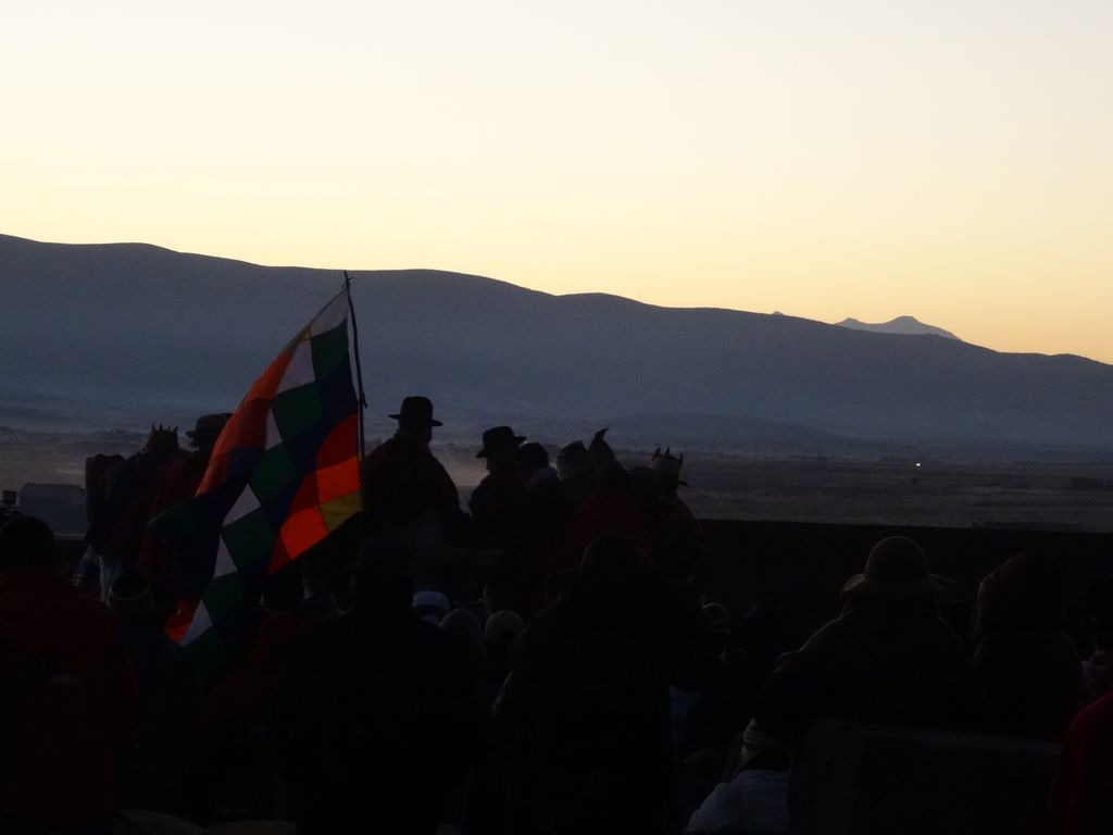 Le drapeau Wiphala, représentant les peuples ethniques Aymaras, qui flotte dans les airs