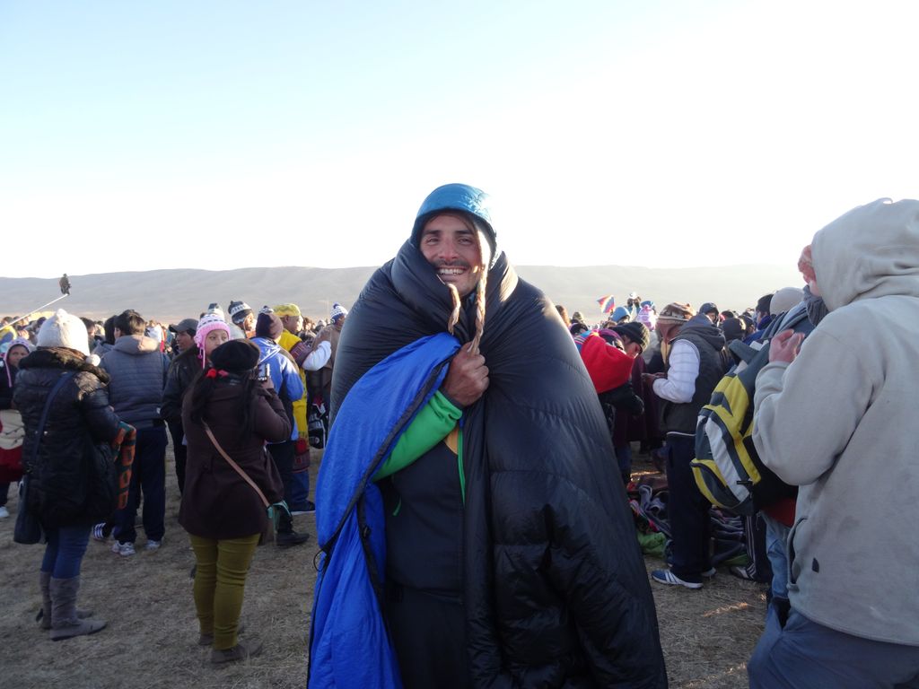 Le drapeau Wiphala, représentant les peuples ethniques Aymaras, qui flotte dans les airs